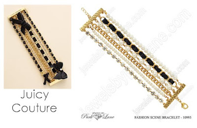 I've been perusing a few online jewelry stores, and blogs and have noticed a few trends. Bows!! I'm not the frilliest girl, so bows are a new thing to me (like layering necklaces a year or so ago). I hope this fad sticks around for a bit because I'm going to jump on it! A friend sent this cute Juicy Couture pic to my in box, and not so surprisingly, Park Lane has one that looks very similar, with a few extra perks. PL's is less expensive, and you can get 2 more (or something else) for $12 each, and another for free...for the same price as the Juicy one.